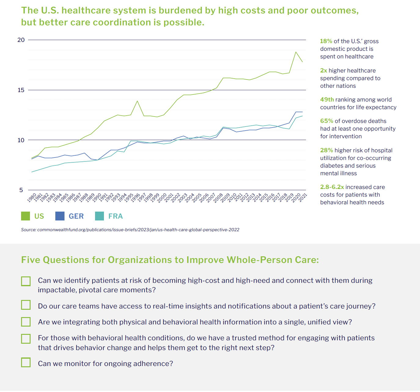 Without affirmative answers, organizations may continue to invest heavily in care coordination and focus on common chronic conditions and comorbidities but fail to address underlying behavioral health challenges and leverage real-time insights when it’s needed most.